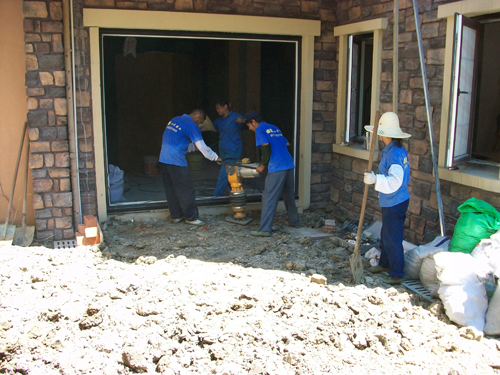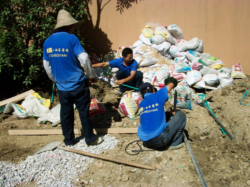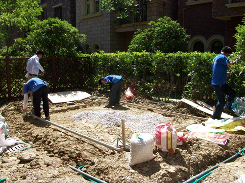 目前龙湖滟澜山水电工程已结束,正在为防腐木休闲平台打基础。