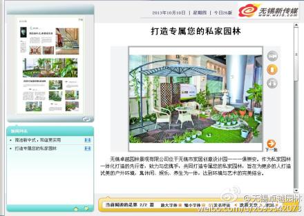 第二届家居创意会展绽放俱崇安!打造专属您的#私家园林#咱们无锡卓越园林上10月10日无锡日报了呢!