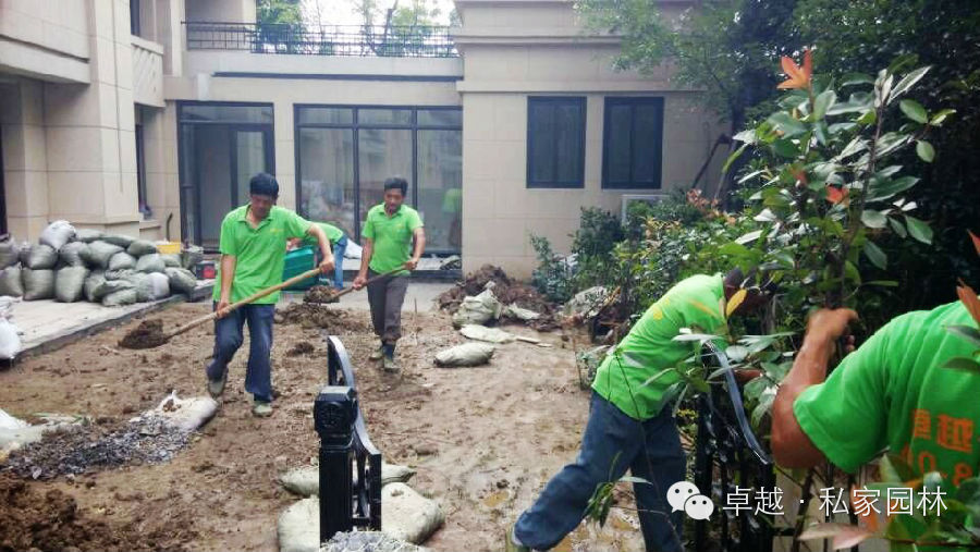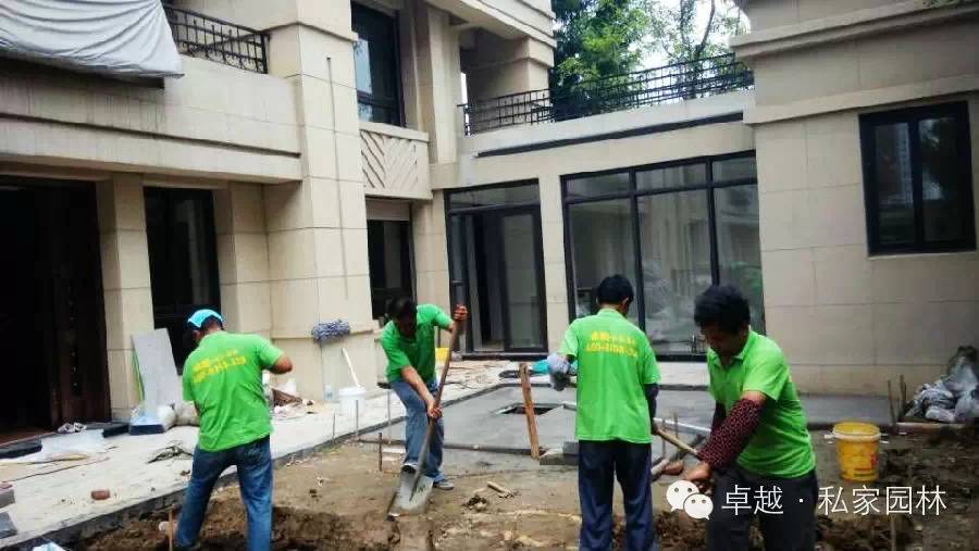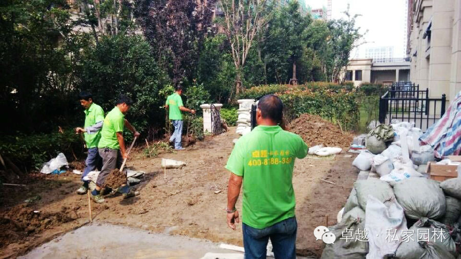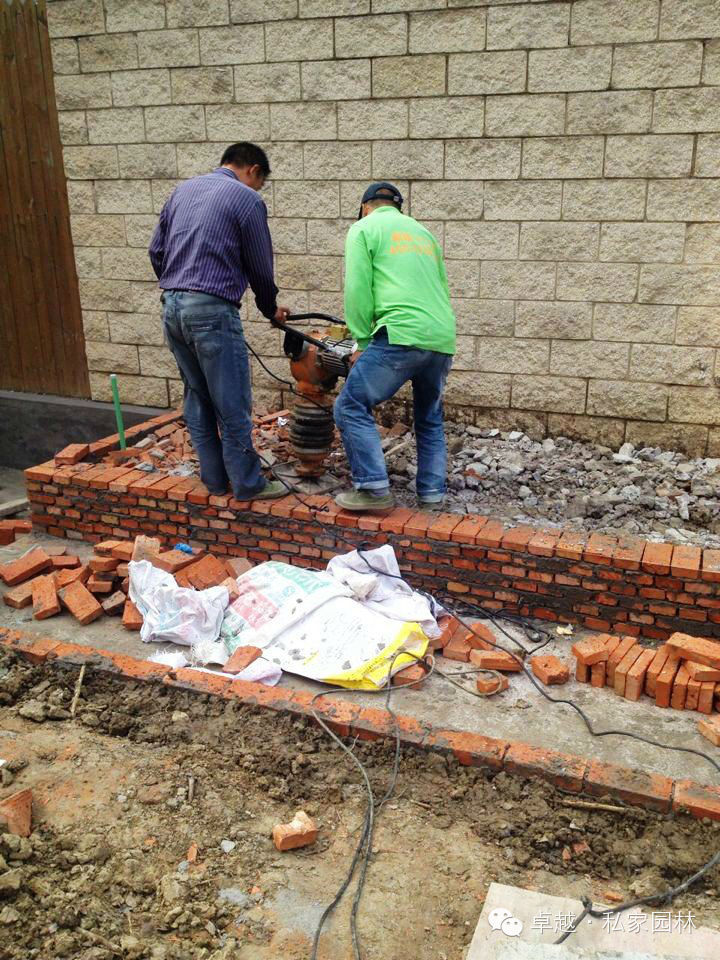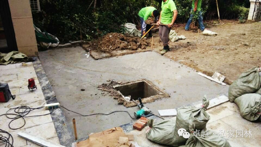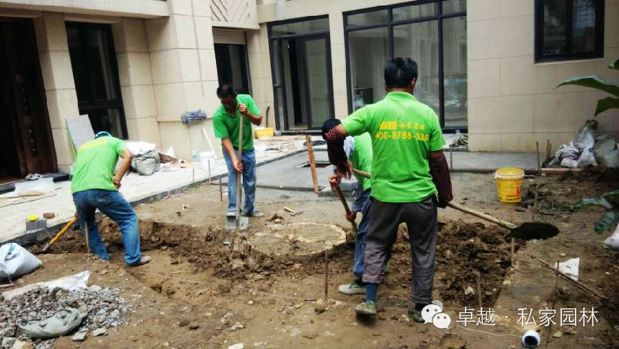 龙湖九墅工地浇防腐木基础,挖土。